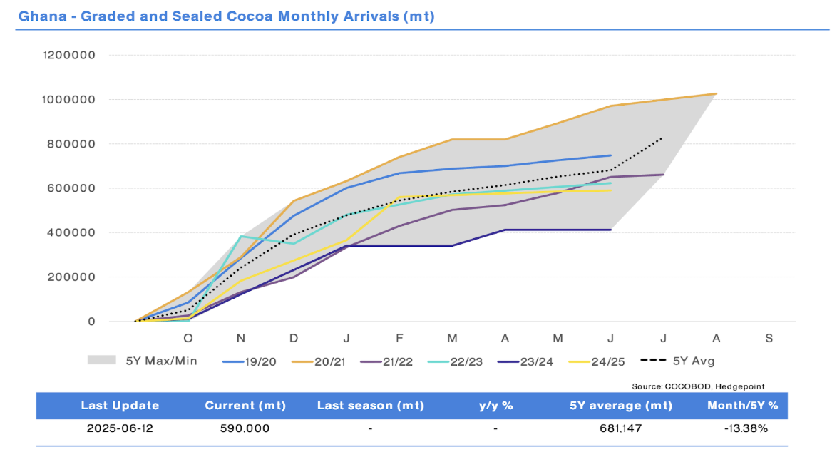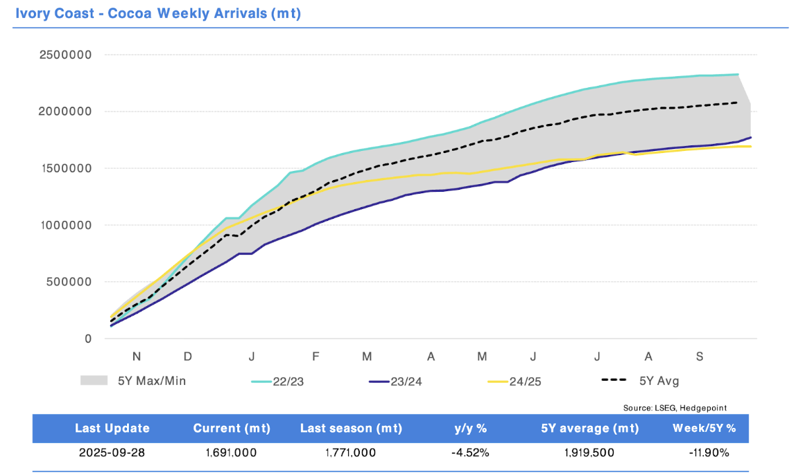 Ghana looks better, and the data from the first arrivals of the 2025/26 season are encouraging, so it is possible that the country will emerge from the cocoa production crisis. However, it will still need some time to meet its accumulated shipment debts.