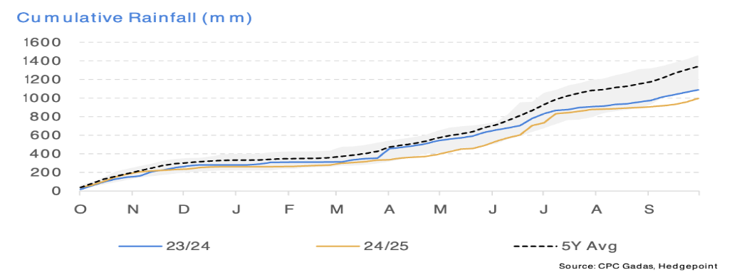 Overall rainfall data is concerning. We would advise paying attention to it, as the figures are significantly below recent averages. Most likely, we are facing yet another scarse season.