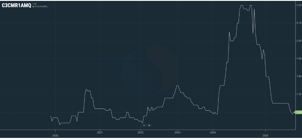 1.60 со стабильно восходящим трендом к 1.8 по 1ый квартал 2026 года. При текущем биржевом уровне цена на второй квартал составит около 12 800 евро-т